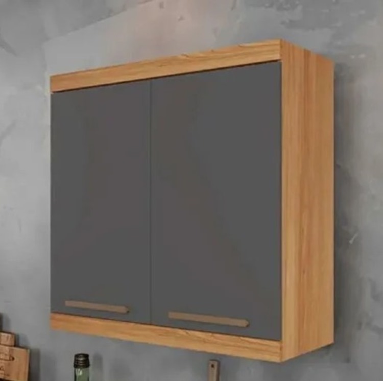 Armário Aéreo Gold, Côr Freijó/Grafite, da Arte Móveis, Medidas:> Alt 0,78m Larg 0,80m Prof 0,32m, Estrutura MDP/MDF, 2 Portas de Bater com Dobradiças Metálicas, 1 Prateleira Interna e Puxador PVC Metalizado.