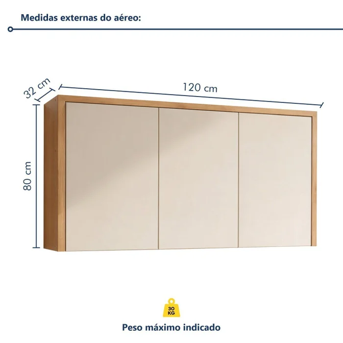 Aereo 1,20m – Larg: 1,20m x Alt: 0,80m x Prof: 0,32m