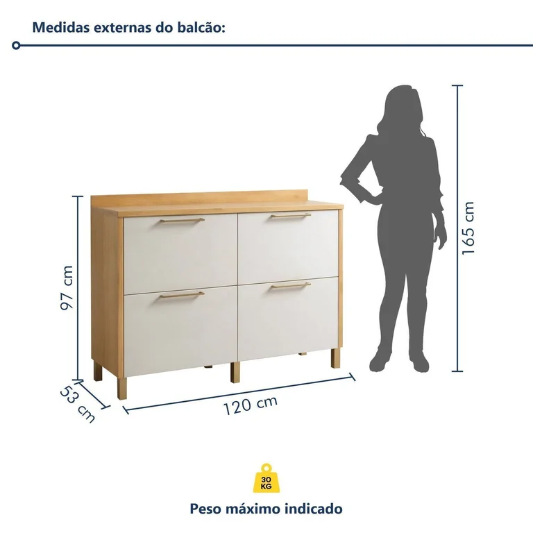 Balcão 1,20m – Larg: 1,20m x Alt: 0,97m x Prof: 0,53m