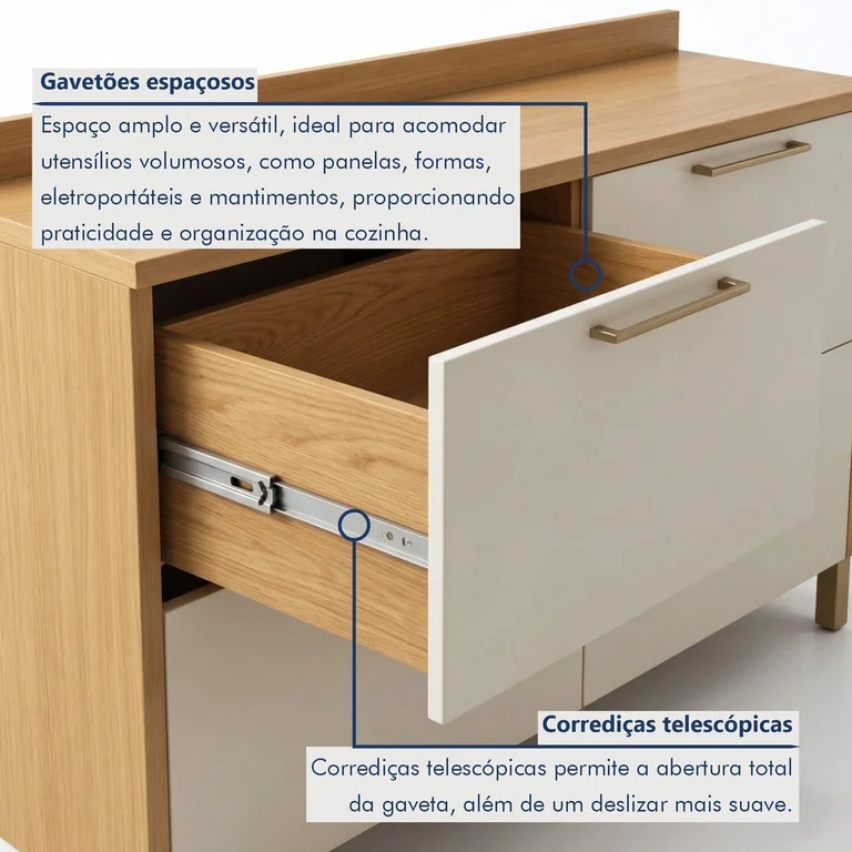 Balcão de 800 com 2 gavetas e 1 porta báscula com pistão a gás