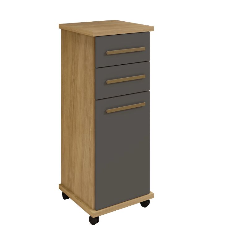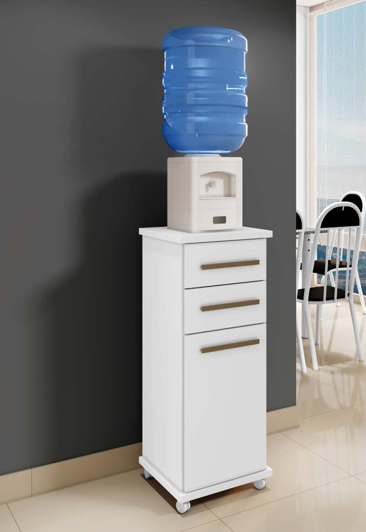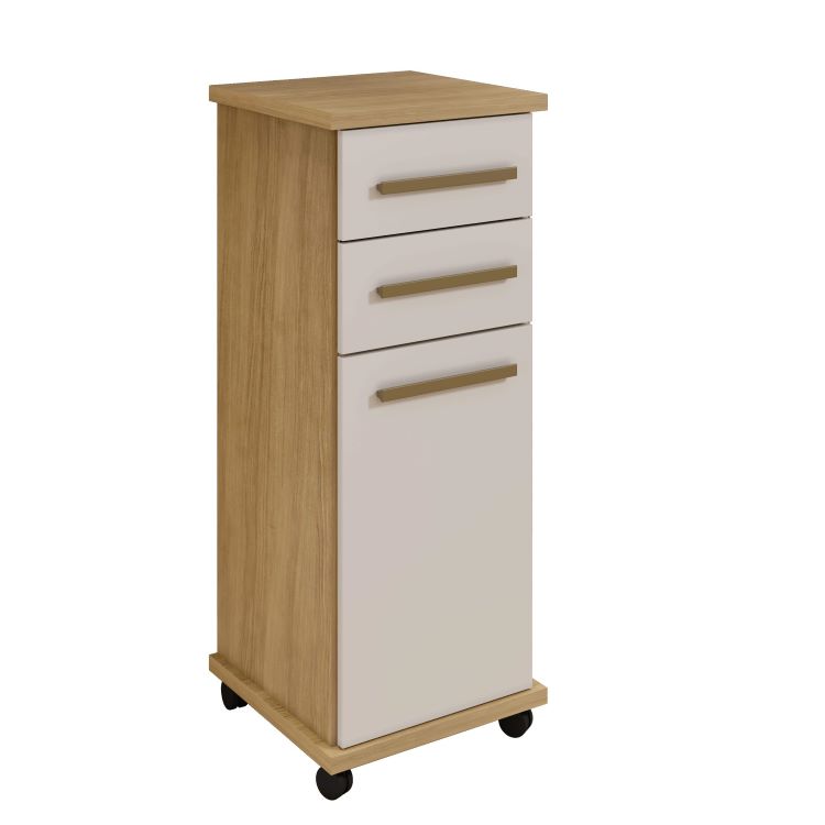 Balcao Tókio, da Arte Moveis, Medidas: Alt 1,04m Larg 0,39m Prof 0,39m Peso 20,25Kg – 1 Volume – Estrutura em MDP 15mm, s, com Base e Tampo em MDF 25mm, 1 Porta de Bater com Dobradiça Metálica, 2 Gaveta com Corrediças Telescópica, Puxadores de MDF, 1 Prateleira Interna e Rodízios Plásticos de PVC e Acabamento em Pintura UV Semi-Brilho.