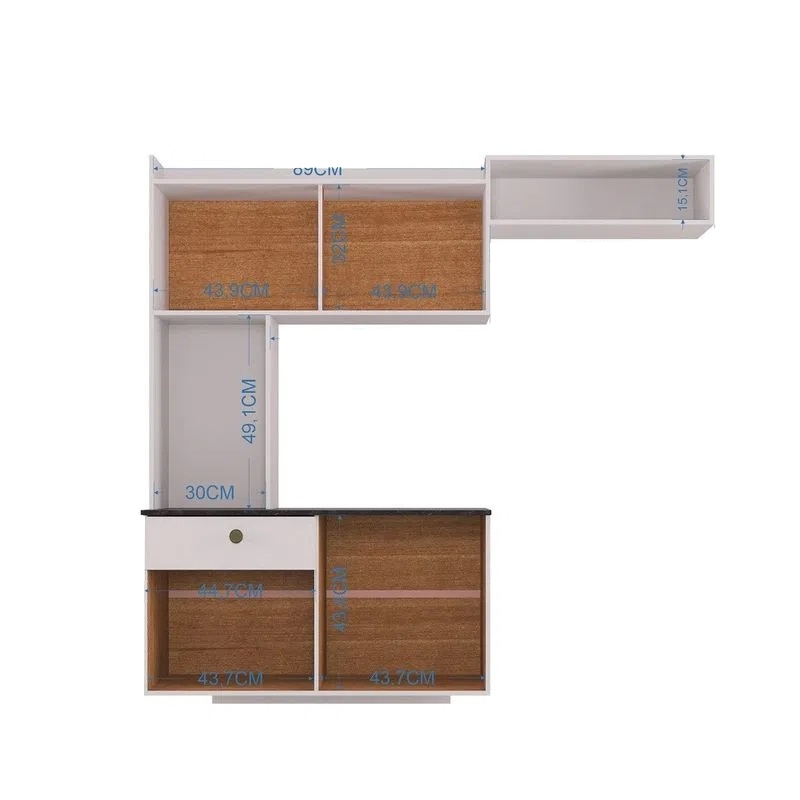 Cozinha Suspensa Lara - Fabricante: Poquema - Cores: Branco ou Branco/Preto - MDP 12 mm - Pintura UV - Duas portas de bater com dobradiças metálicas - Duas portas de correr - Uma gaveta com corrediças plásticas - Puxadores plásticos Medidas Altura: 135 cm Largura: 151 cm Profundidade: 35 cm NS/sr