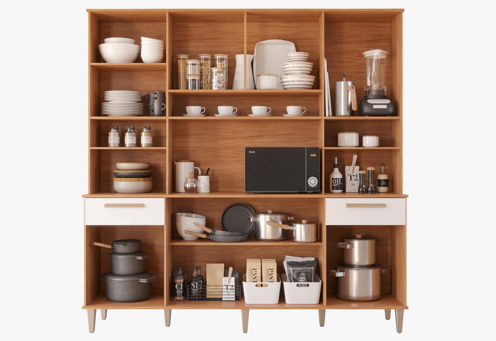 – Gavetas com corrediças telescópicas e puxadores em ABS na cor gold
