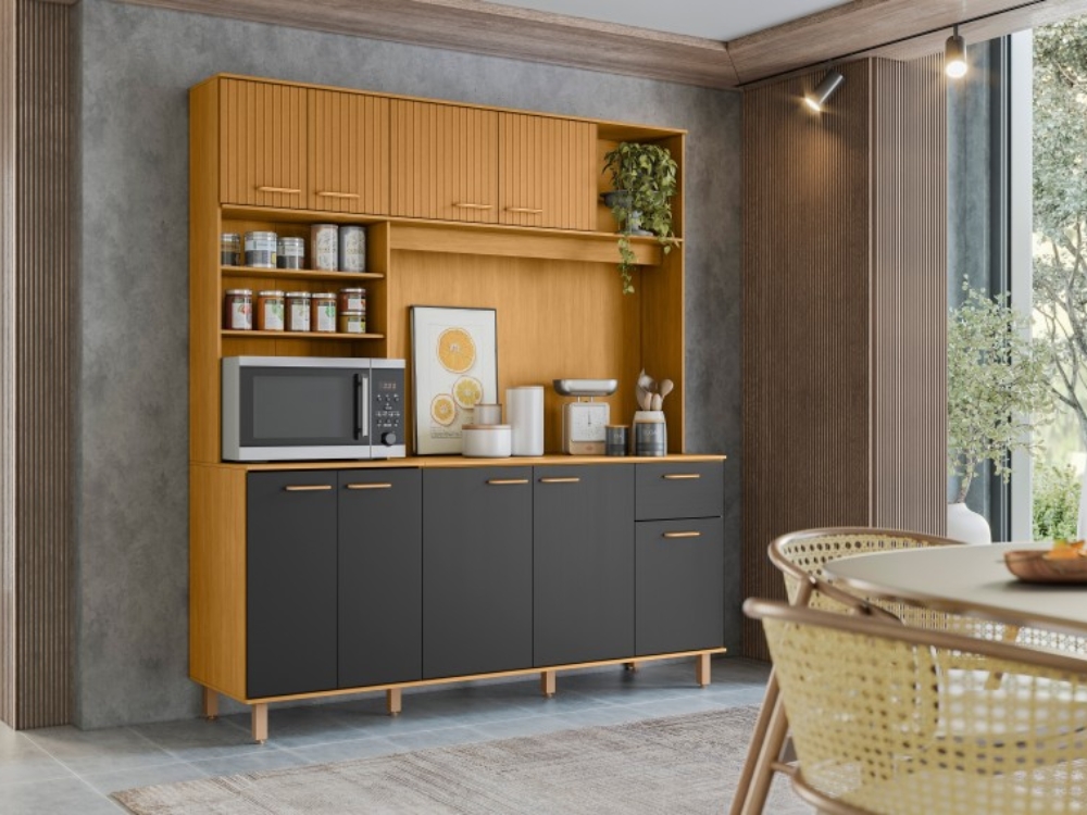 O Armário Kit de Cozinha Núria 9 Portas 1 Gaveta – Freijo Ripado/Grafite Acetinado é uma solução prática e funcional para organizar utensílios e mantimentos na cozinha. Com um design moderno e compacto, o kit oferece espaço interno otimizado para aproveitar ao maximo o ambiente.