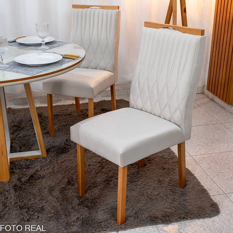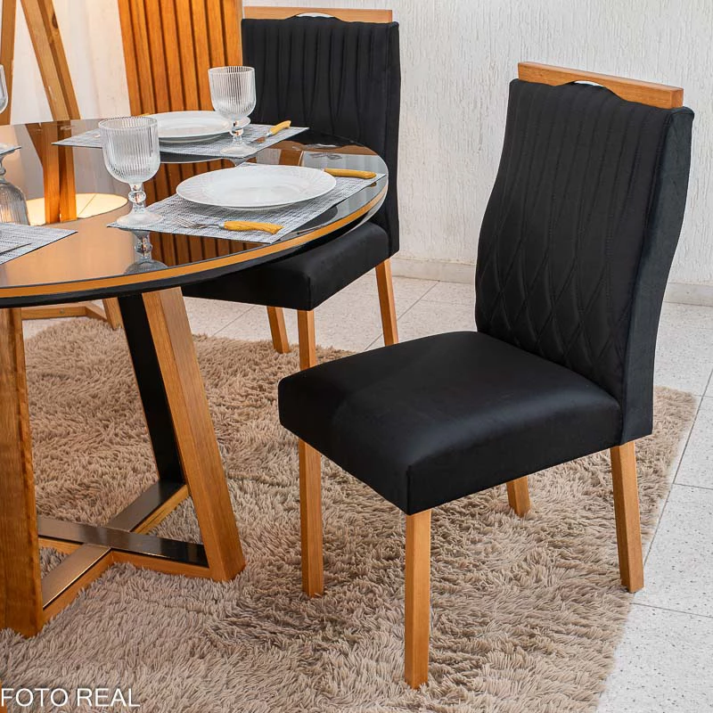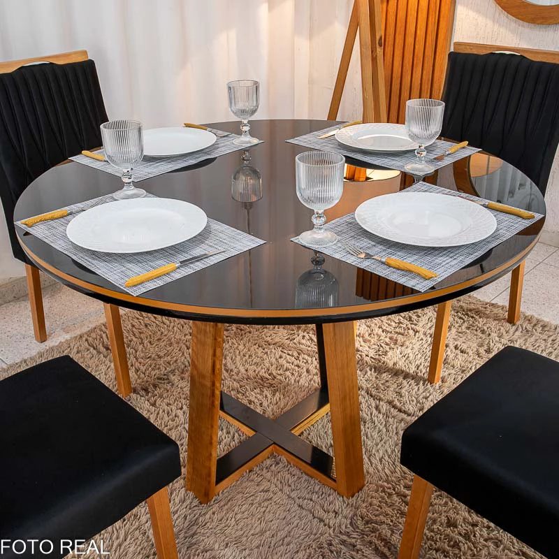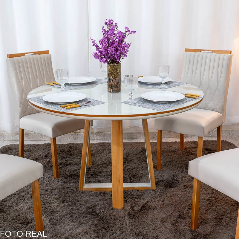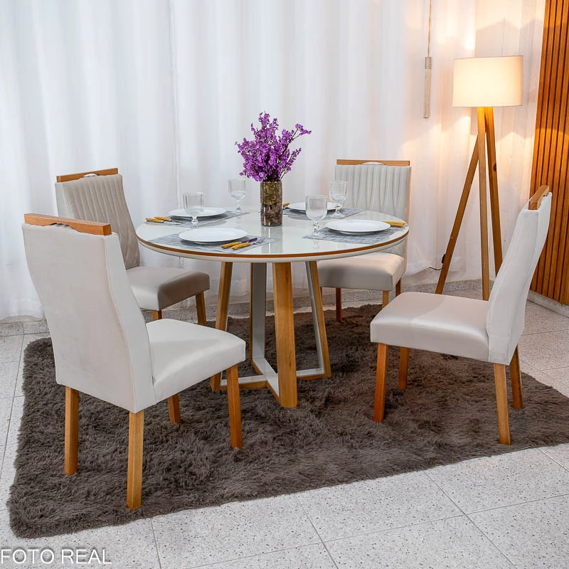 Mesa de Jantar Atlanta Redonda 120cm Base Madeira – Minas Plac + 4 Cad. Genova Veludo Madeira Art Assentos – Entregue Montada