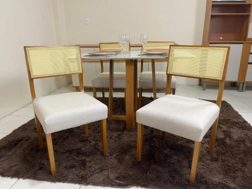 Mesa de Jantar Pedro 1.20×0.80 Com 4 Cadeiras Grécia – Cinamomo/Off White