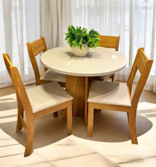 Mesa de Jantar Flipp Redonda 90cm Off White 4 Cad. Sol Assento Linho Bronze – Viero
