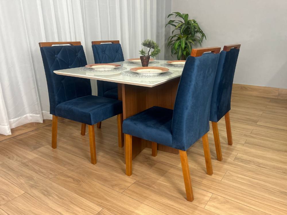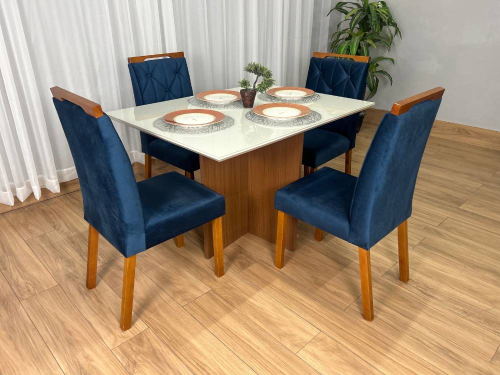Mesa de Jantar Helo 1.20×0.90 Com 4 Cadeiras Jasmim – Polimam/Ouro decor