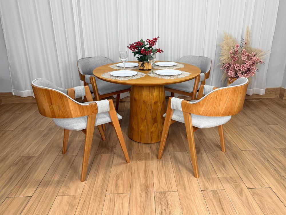 Mesa de Jantar Paris 1.10×1.10 c/4 Cadeiras Pérola – Minasplac/WJ Decor