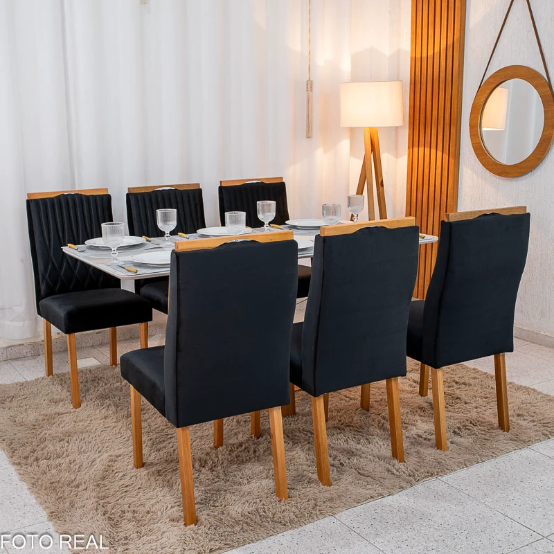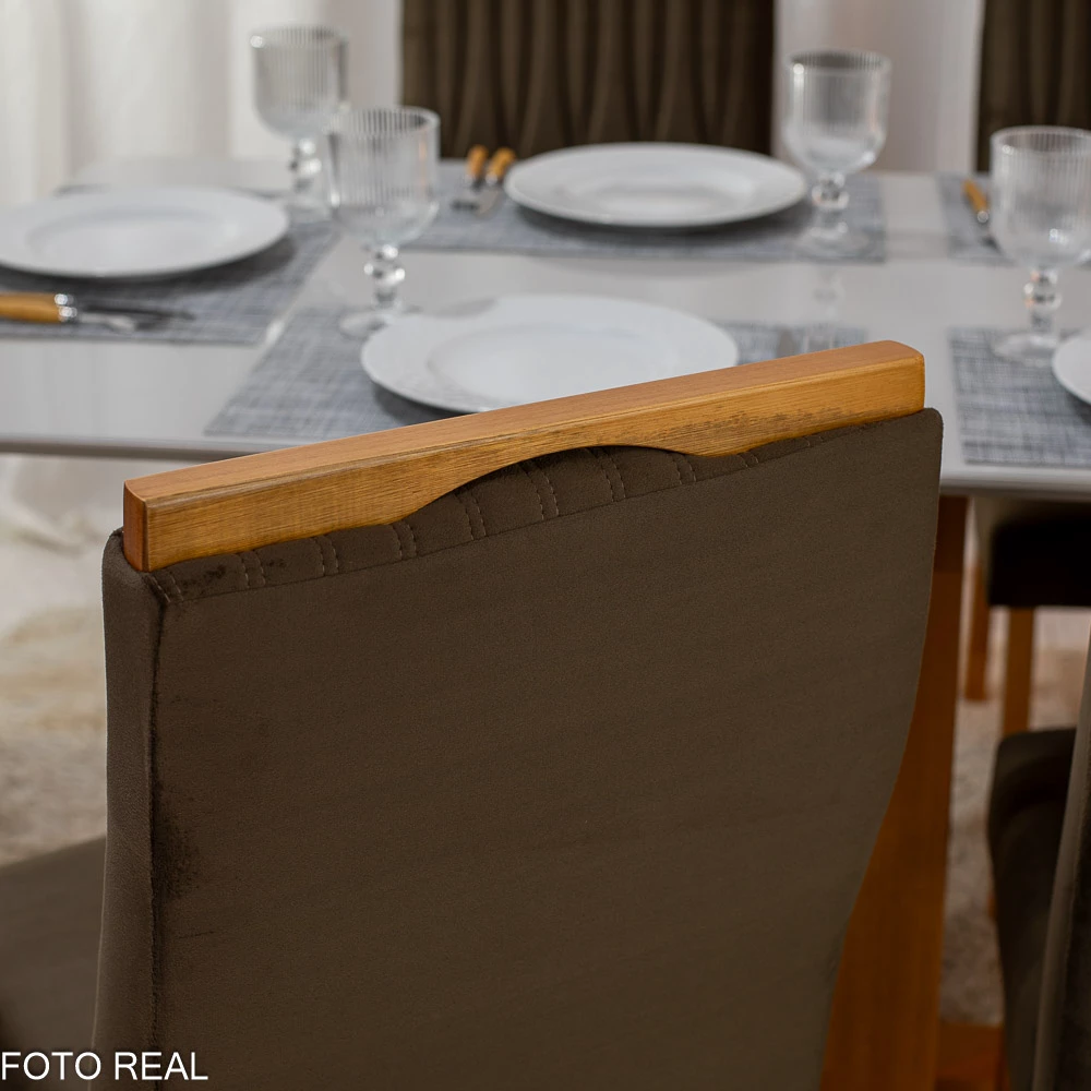 Mesa Pedro Mel Vidro OFF 160×80 6 Cadeiras Genova Veludo Madeira Maciça Art Assento – Entregue Montada