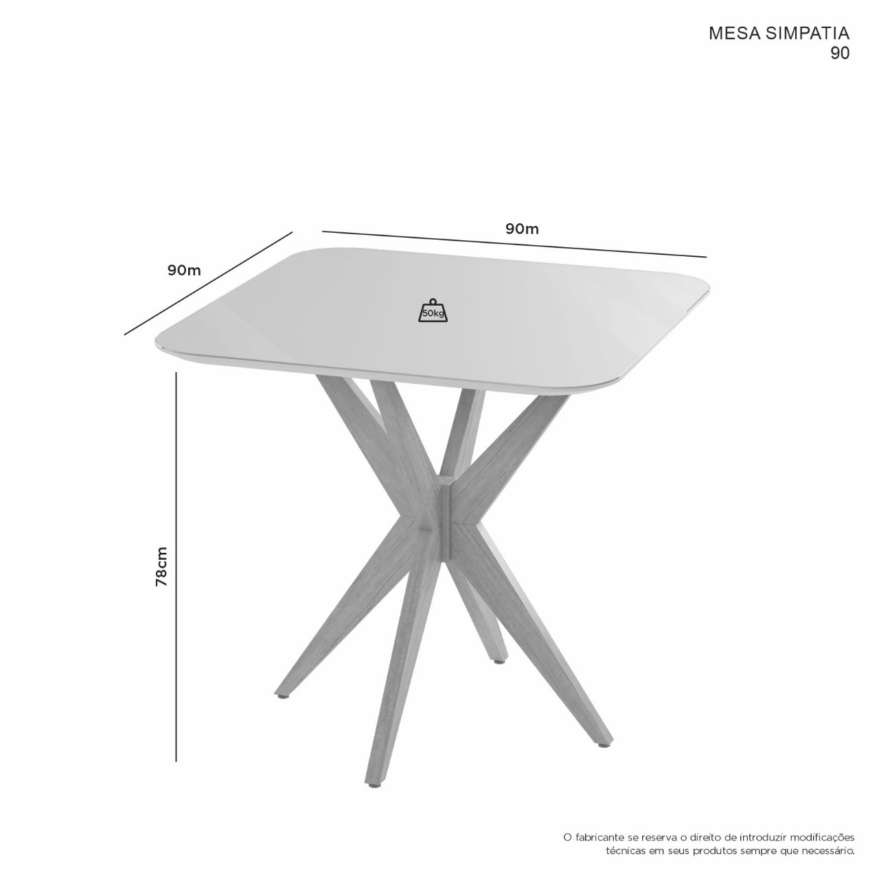 Mesa Simpatia 90 x 90 Quadrada ( Cadeiras Vendida Separadamente)