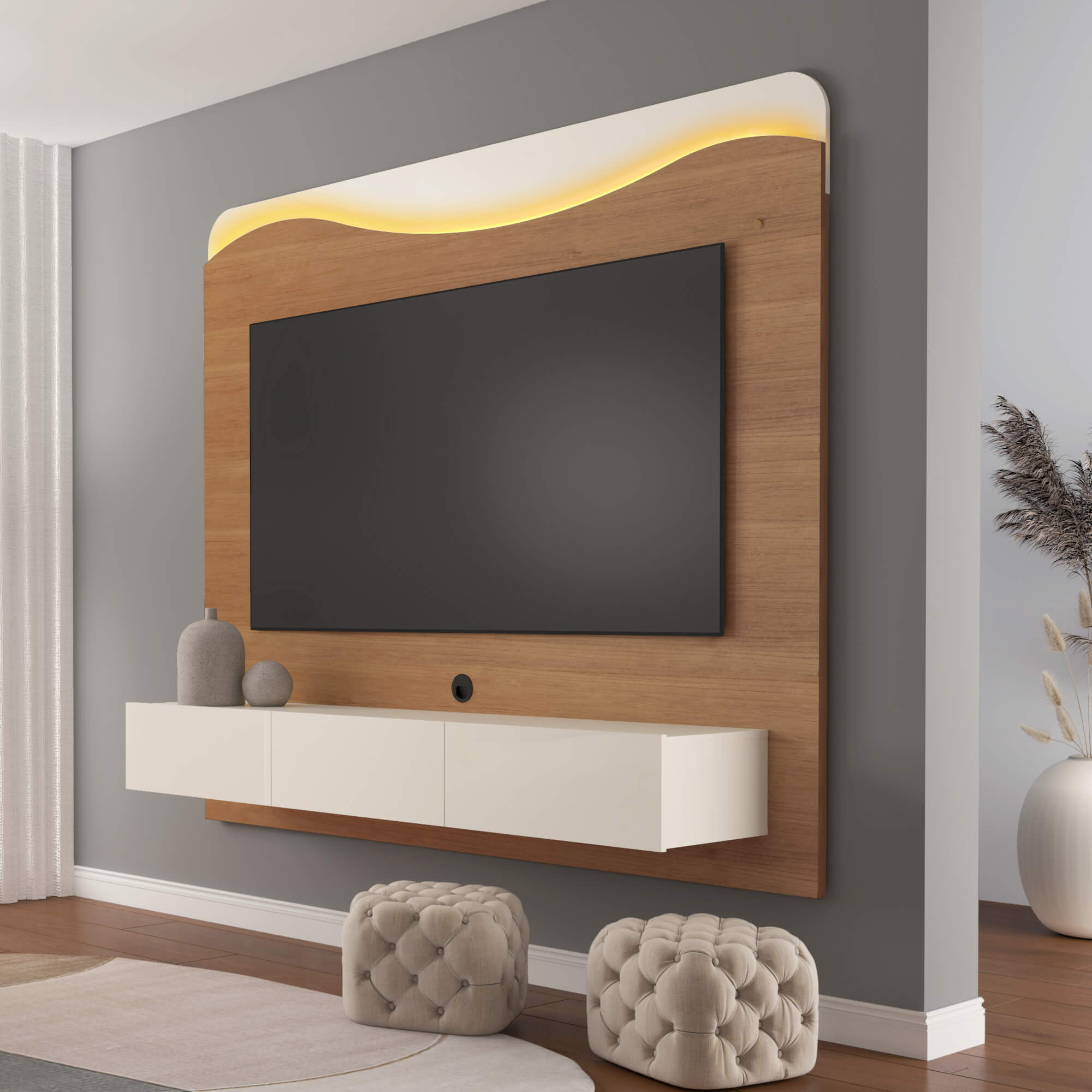 Painel até 75″ Lumiere Cinamomo/Off White – ARTELY