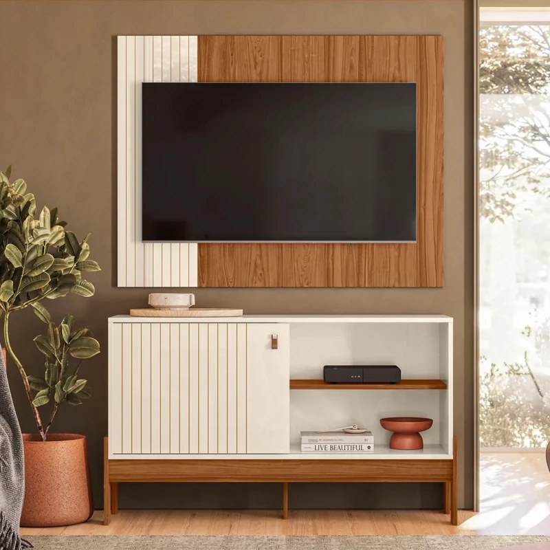 Rack e Painel Wood Pérola Metalizada-Cinamomo Mel Larg. 1.20m – Mobler