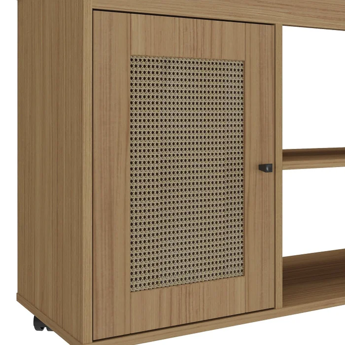 Rack Royal,  da Artely, Medidas: Alt 0,65m Larg 1,22m Prof 0,48m – Estrutura 100% MDP, 1 Porta Deslizante com Detalhes Curvos, 3 Nichos para Eletroeletrônicos e Objetos Decorativos, Puxador e Sapatas Plásticas, Acabamento em Pintura Texturizada UV Semi-Brilho e Porta UV Bilho. Ideal para TVs até 50 Polegadas.