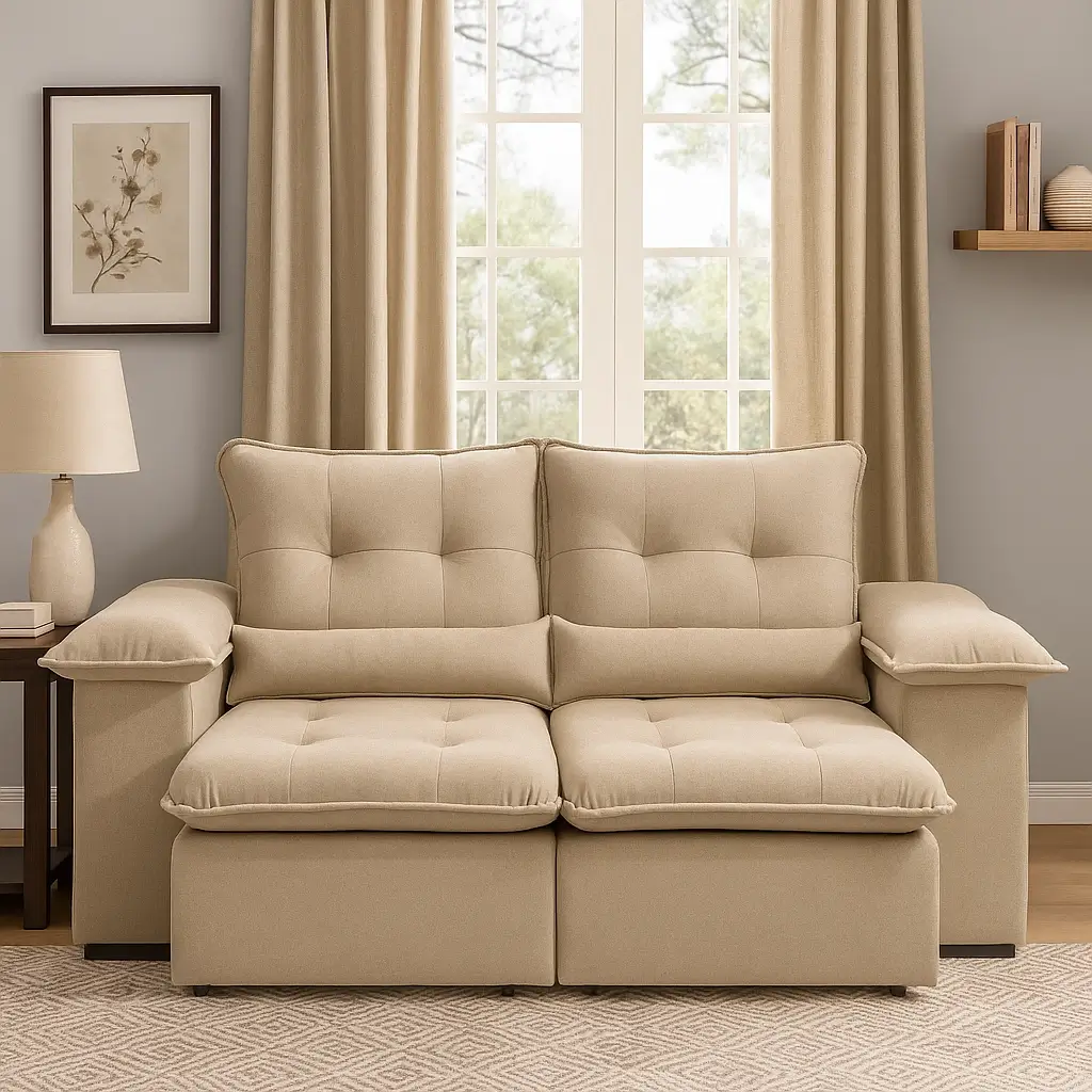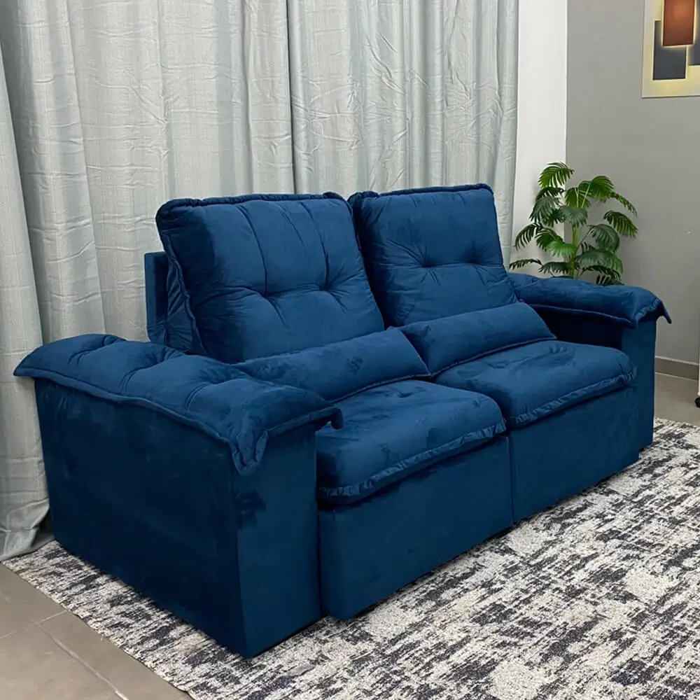 Sofá Retrátil e Reclinável Arsena 2m - Fabricante: Aifos Estofados - Cores em Cobre, Rosê, Azul, Bege, Bordô, Cinza, Marrom, Preto, Verde e Vermelho - Assento com molas espirais - Pillow de 15 cm com espuma 28 - Braço e encosto almofadados, com fibra siliconada e flocos - Catraca 4 estágios - Percinta elástica - Madeira eucalipto reflorestada Dimensões Altura: 105 cm Largura: 200 cm Profundidade: 110 cm Profundidade aberto: 150 cm pr