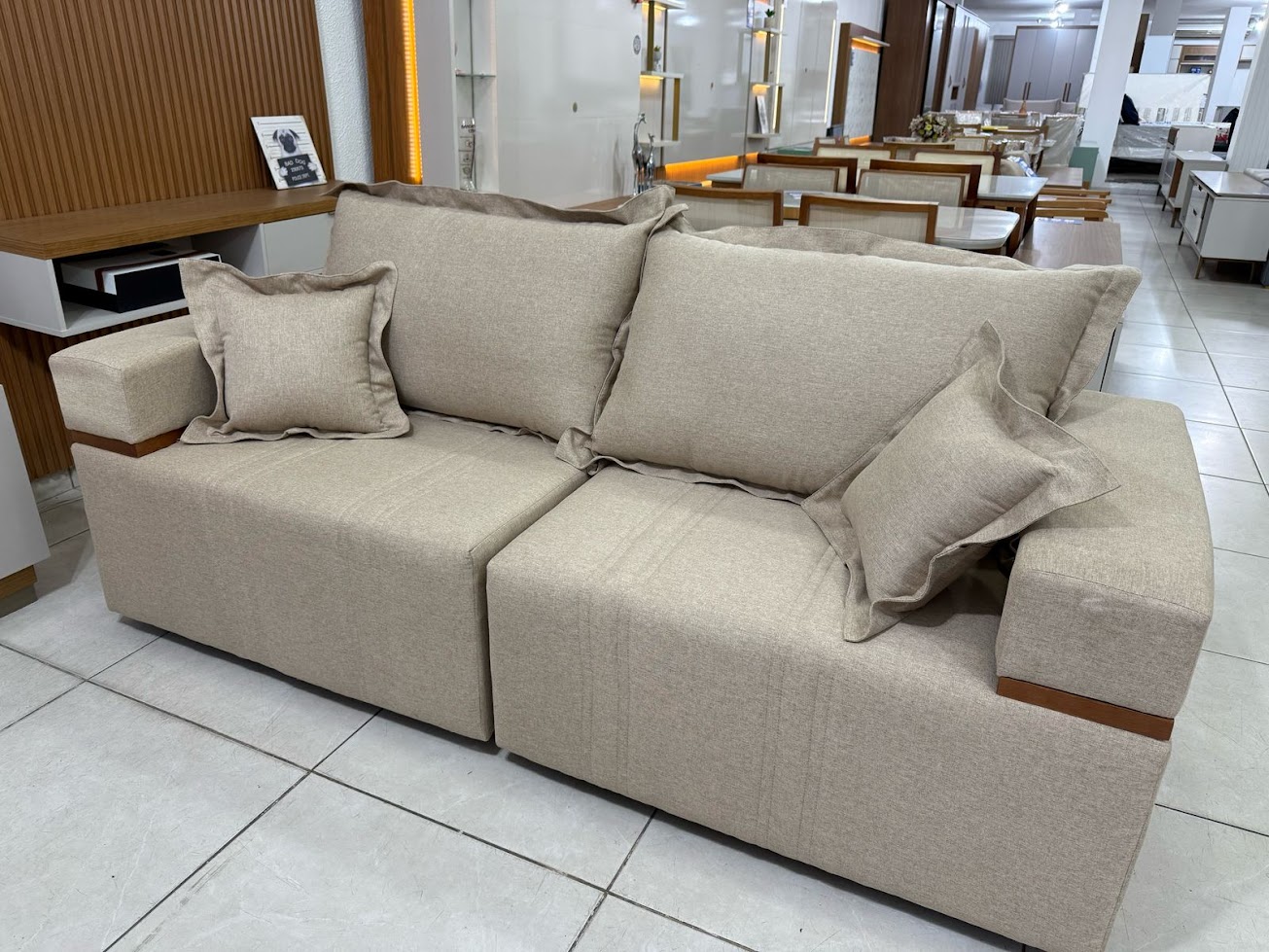Assento com percintas elásticas e Espuma soft D28 contínua que da maior conforto e durabilidade ao estofado