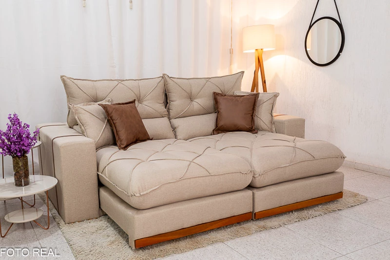 Informamos que é normal haver uma abertura entre os módulos dos sofás retráteis. Essa abertura é necessária para evitar atrito entre os módulos durante o movimento de abrir e fechar, prevenindo o desgaste do tecido.