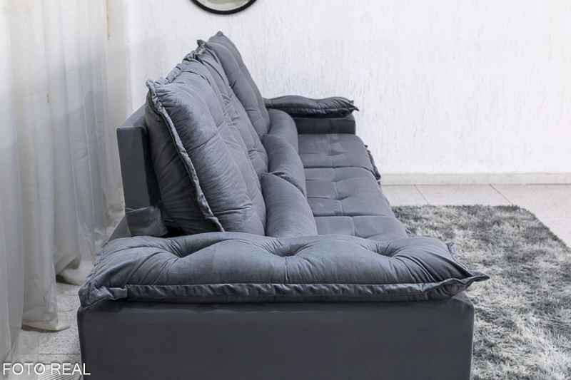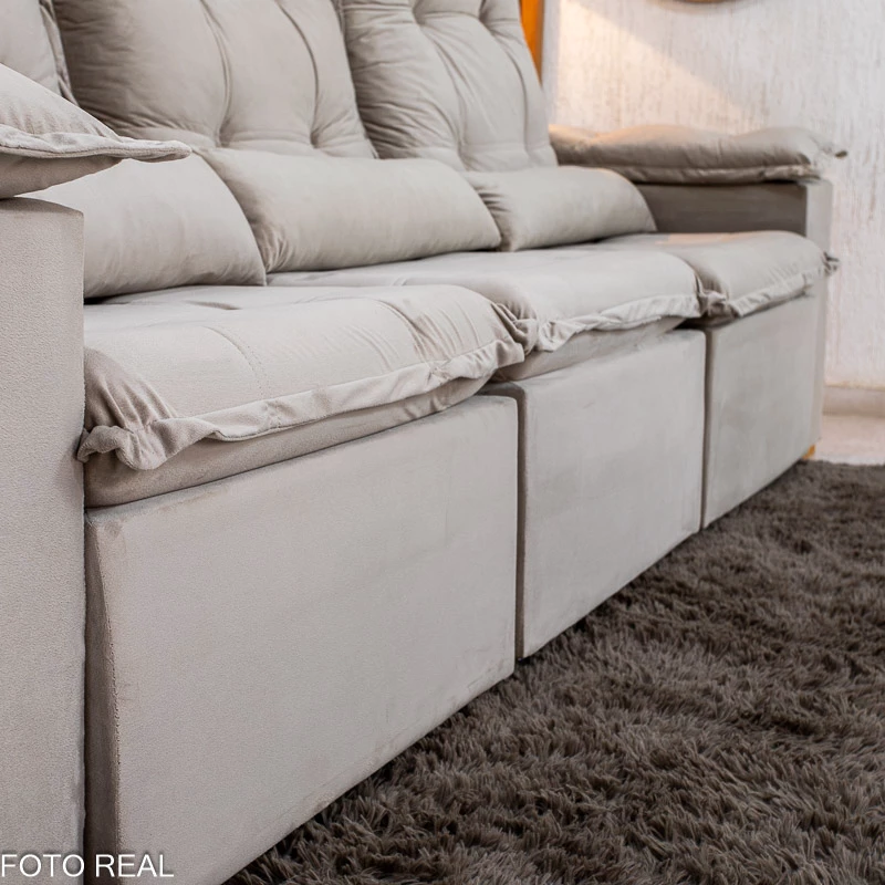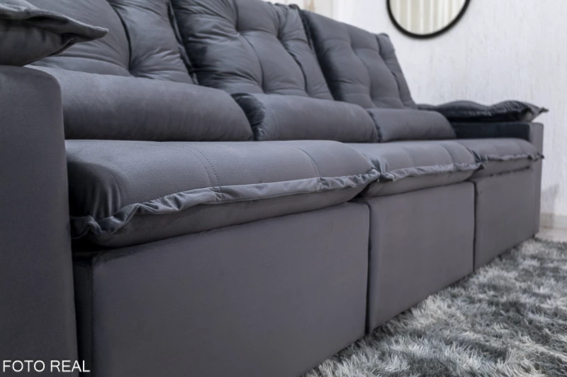 Atenção: Informamos que é normal haver uma abertura entre os módulos dos sofás retráteis. Essa abertura é necessária para evitar atrito entre os módulos durante o movimento de abrir e fechar, prevenindo o desgaste do tecido.