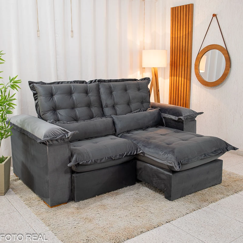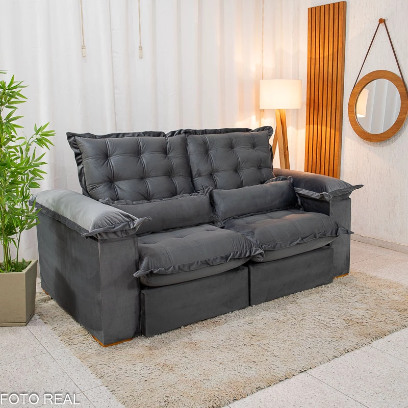Sofá Retrátil Reclinável Maldivas 2.10m Veludo – Espuma Pró Aditivada