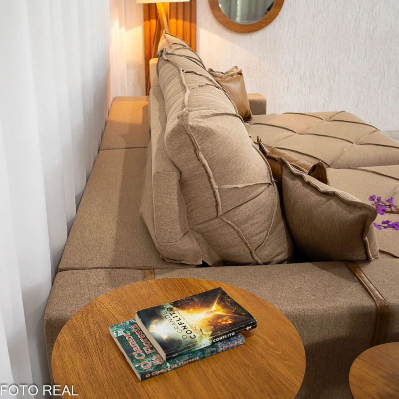 Informamos que é normal haver uma abertura entre os módulos dos sofás retráteis. Essa abertura é necessária para evitar atrito entre os módulos durante o movimento de abrir e fechar, prevenindo o desgaste do tecido.