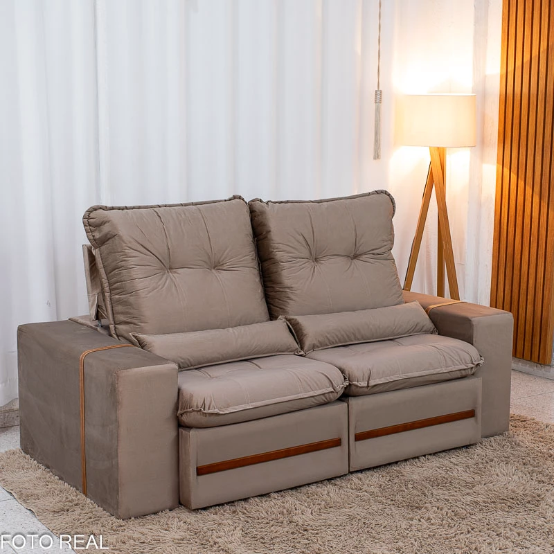 Informamos que é normal haver uma abertura entre os módulos dos sofás retráteis. Essa abertura é necessária para evitar atrito entre os módulos durante o movimento de abrir e fechar, prevenindo o desgaste do tecido.