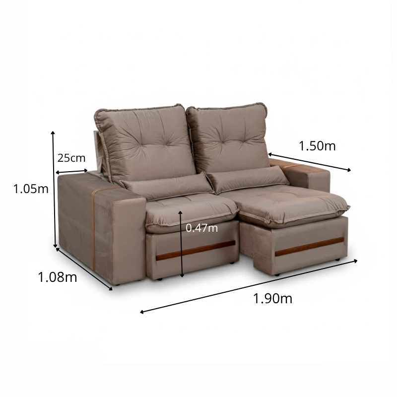 Sofá Retrátil Reclinável Montreal 1.90m Veludo – D33