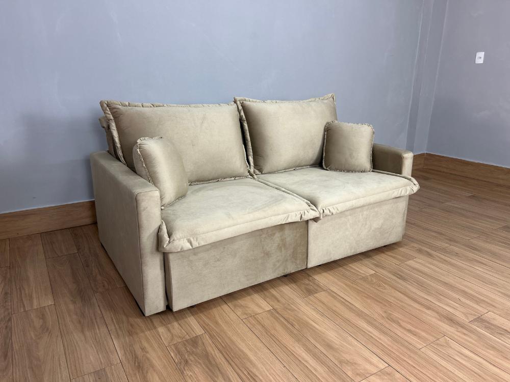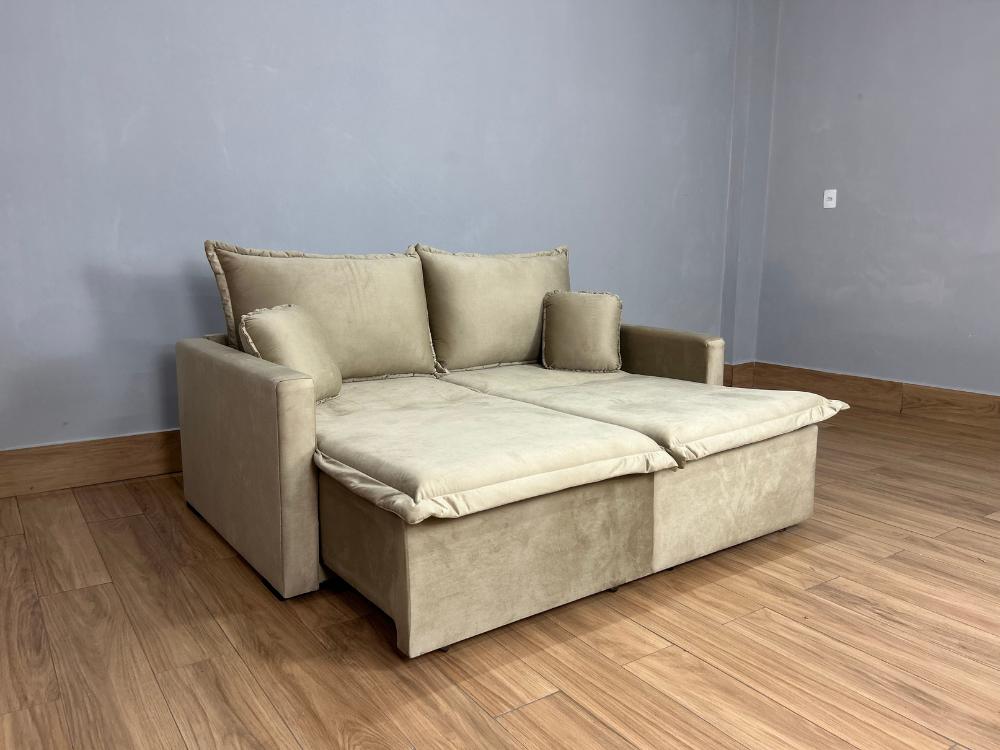 Sofá Cama Retrátil Reclinável Positano 1.80m Mod.80 – Capuccino Veludo