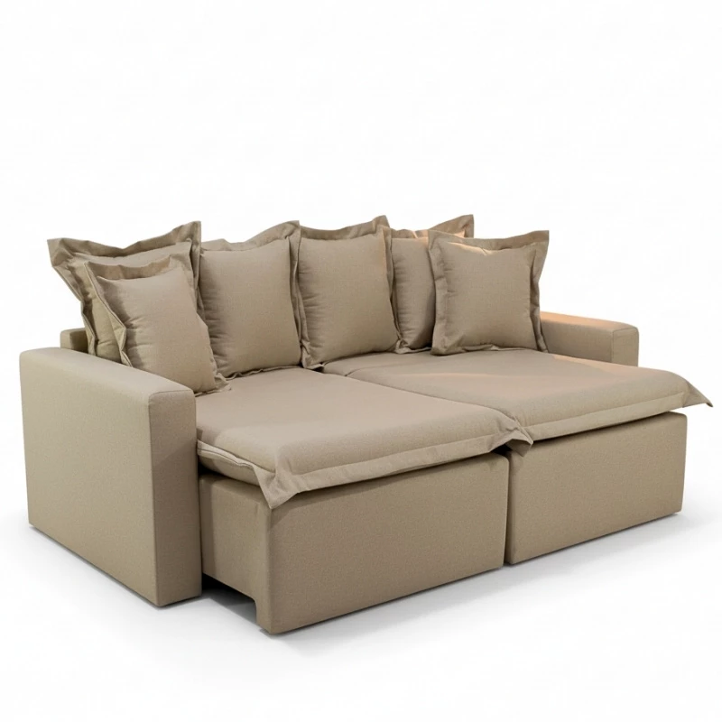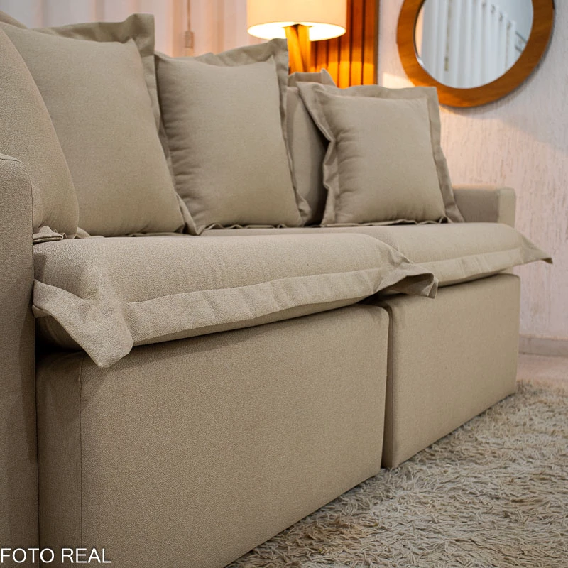 Informamos que é normal haver uma abertura entre os módulos dos sofás retráteis. Essa abertura é necessária para evitar atrito entre os módulos durante o movimento de abrir e fechar, prevenindo o desgaste do tecido.