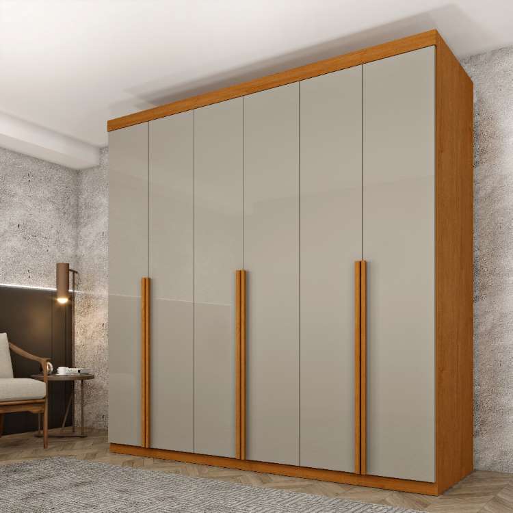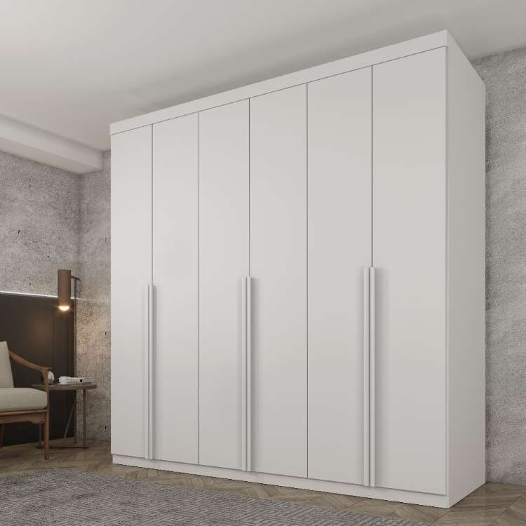 Roupeiro Andorra 6P4G, da TCIL Móveis, Medidas: Alt 2,17m Larg 2,18m Prof 0,46m Peso 137,20Kg – 3 Volumes – Estrutura 100% MDF 12mm e 15mm, 6 Portas de Bater com Dobradiças Metálicas e Puxadores de Perfil em MDF, 4 Gavetas Internas com Corrediças Metálicas Telescópicas e Puxadores Grace de PVC, Colméia Interna com Amplos Epaços: 3 Nichos Superiores para Roupas de Cama, Malas e Demias Utensílios Pessoais, 3 Nichos com Cabideiros com Suportes de Alumínio, sendo 1 Calceiro, 2 Nichos Centrais para Roupas, Objetos Pessoais e Demais Utensílios, 2 Nichos Sapateriras sob os Gaveteiros e Acabamento em Pintura UV Brilho e Semi-Brilho.