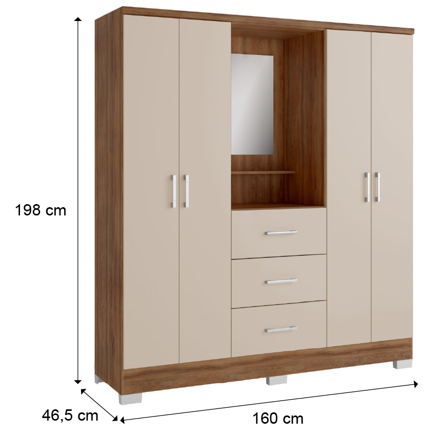 Guarda-Roupa Capelinha Roma 1181 1,60 m Freijó/Off White – CARRARO MÓVEIS