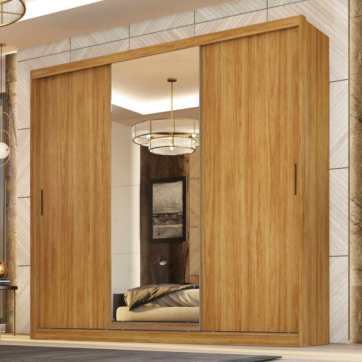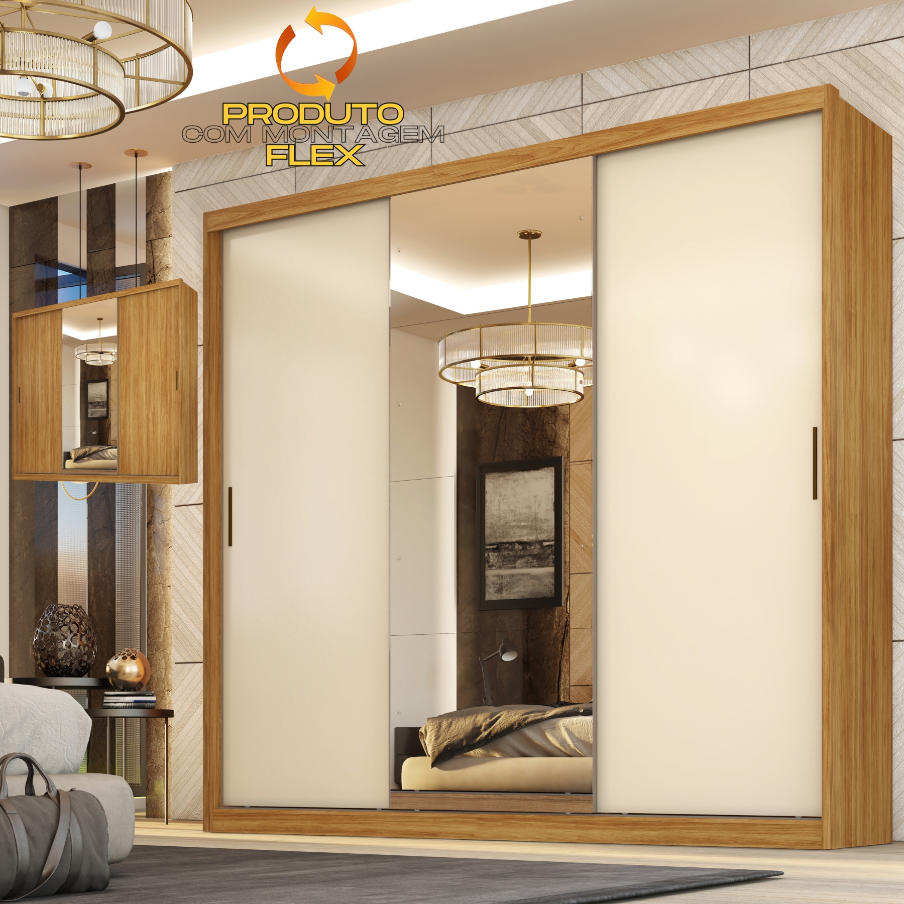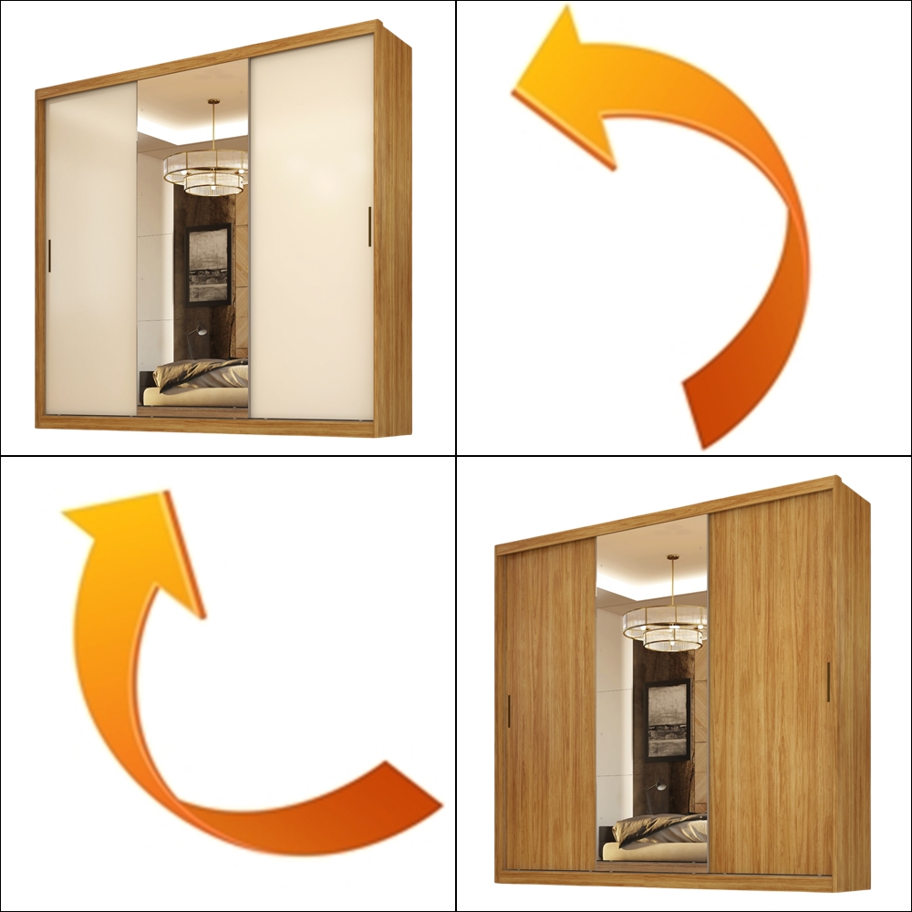 Guarda-Roupa 3 Portas Dalila (Com Espelho) Cinamon Touch/Off White – DEMÓBILE