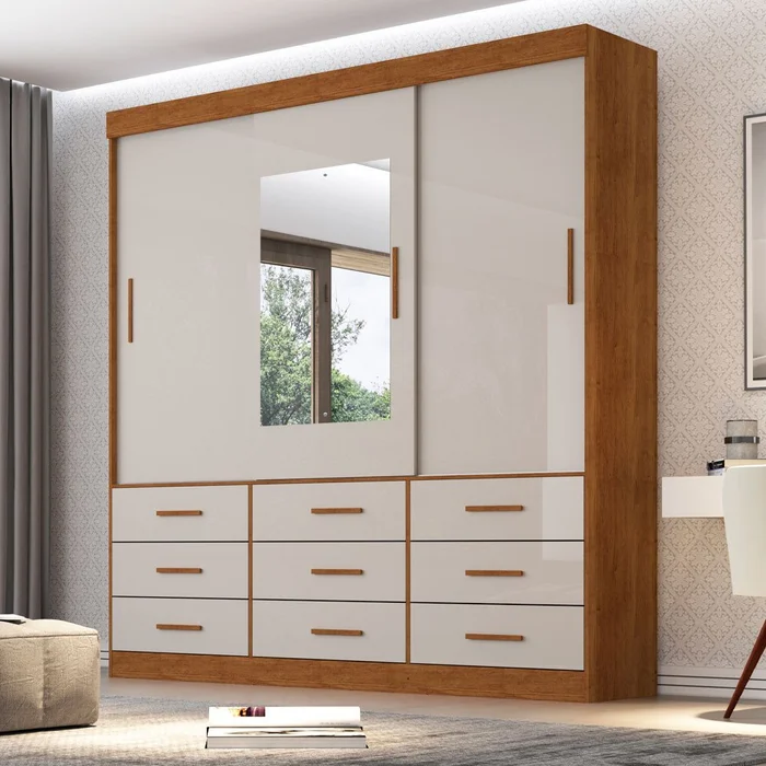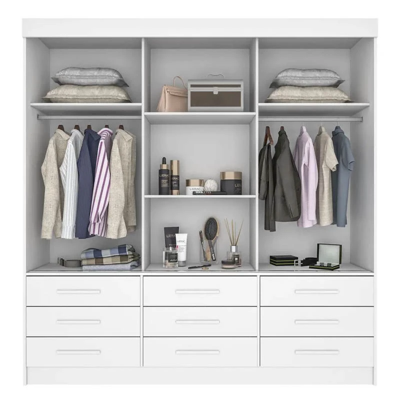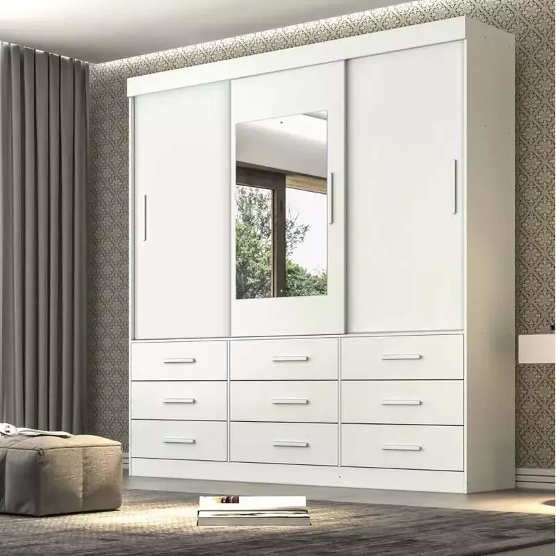 Roupeiro New Star 3 Portas 9 Gavetas C/ 1 Espelho Larg. 1.80m – Sallêto