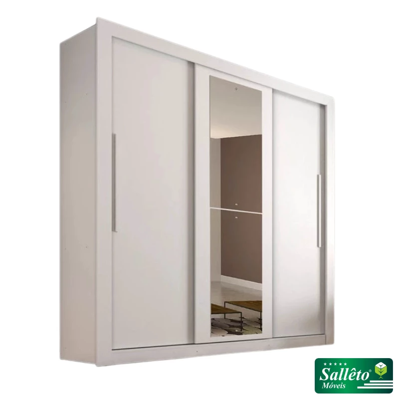Guarda-Roupa Casal 3 Portas New Panamá c/Espelho Tóquio Branco Larg. 1.85m Sallêto