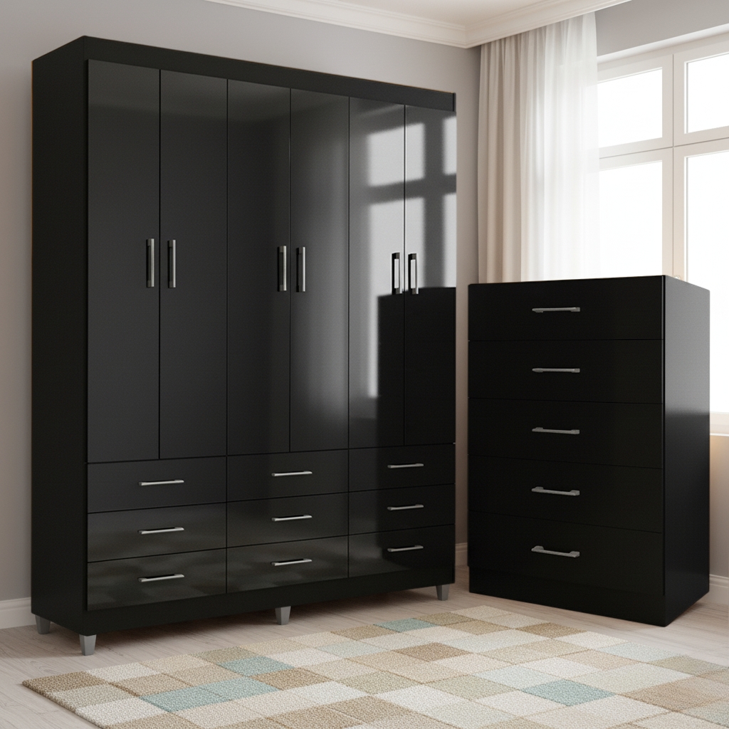 Guarda-Roupa 6 Portas Paraty 3690 + Cômoda 5 Gavetas Aruba – FELLICCI