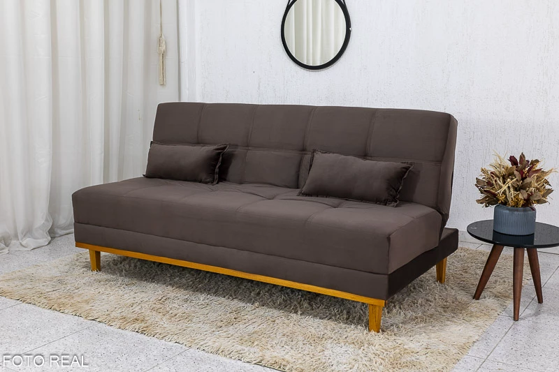 Sofá Cama Madrid larg. 1.80m Molas Bonnel Veludo Bege 2269